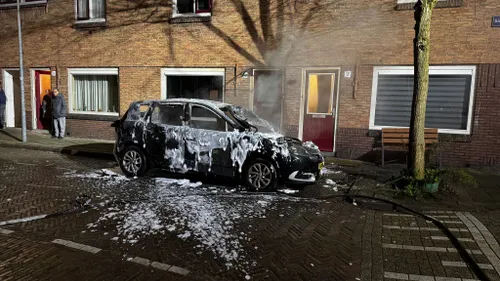 Slamatstraat in Haarlem een auto in brand gevlogen. De brandweer was snel