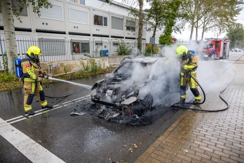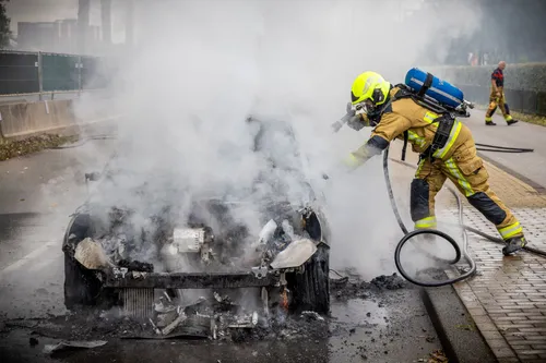 voor het verkeerslicht. Even later stond de auto helemaal in brand. Het gaat om