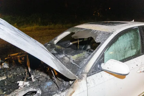 vrij. Het voertuig raakte zwaar beschadigd door de brand.