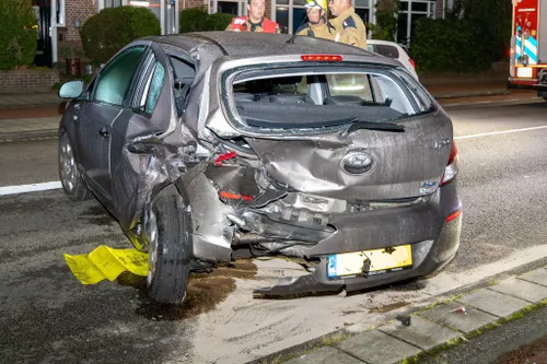 Beide auto’s liepen forse schade op, zo ook de voortuin
