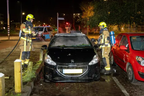 is vannacht rond 4.00 uur een auto uitgebrand. Een getuige maakte een foto van