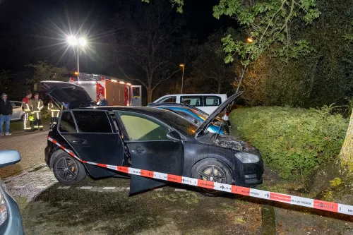 nabij geparkeerde auto liep schade op door de explosie. De getroffen auto is