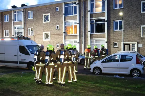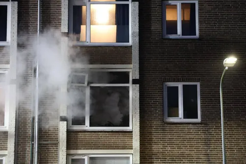 appartementengebouw. Bij aankomst van de brandweer sloegen de vlammen uit de