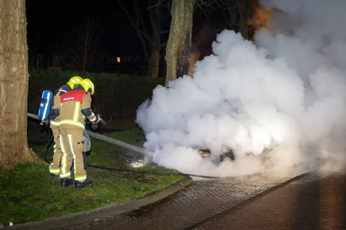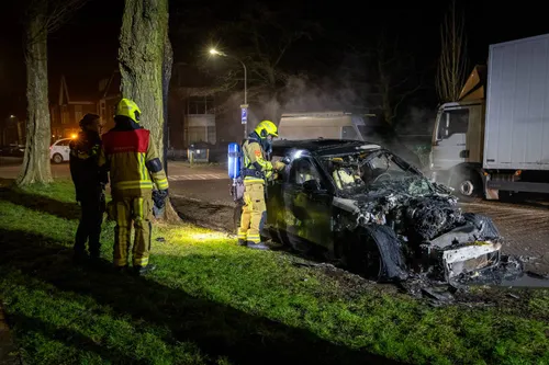 geparkeerde auto volledig uitgebrand in de Ter Spijtstraat in Haarlem. De brand