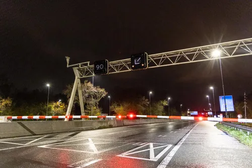 een voertuig van Rijkswaterstaat dat nog stond in verband met de afscherming
