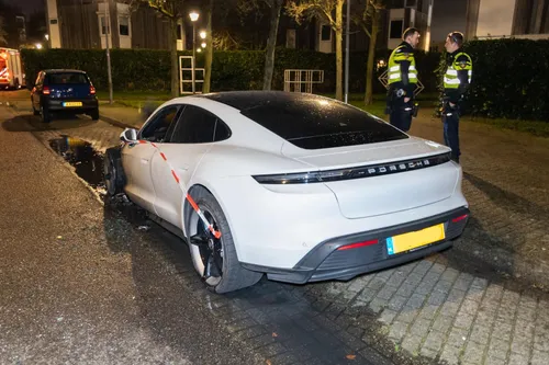 De peperdure bolide stond aan de weg geparkeerd. De politie