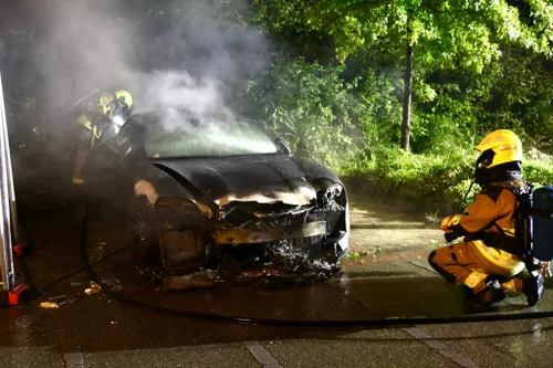 uur een luxe Porsche volledig in vlammen opgegaan bij een autobrand aan het