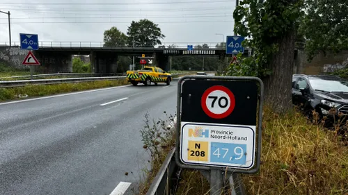 hoge vrachtwagen tegen het spoorviaduct van de N208 gereden. Er is daarom