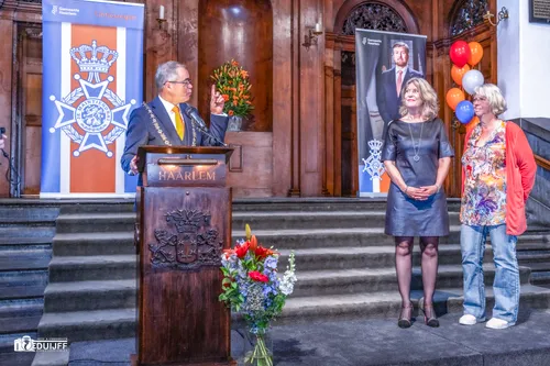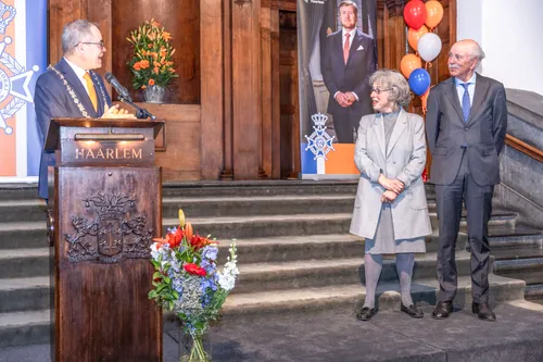 Haarlem - Op de dag vóór Koningsdag vindt jaarlijks de traditionele lintjesregen plaats. Twaalf Haarlemmers kregen van burgemeester Jos Wienen een koninklijke onderscheiding opgespeld.