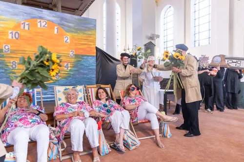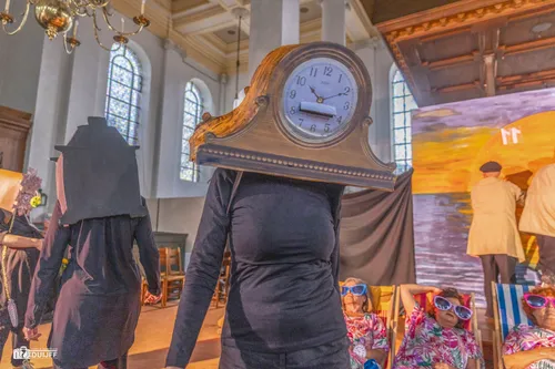Dames zonnend in de 'kerke-zon' zagen de meest hilarische- en historische uurwerken aan zich voorbij trekken en er was zelfs een hoog zwanger uurwerk bij, dat ook daadwerkelijk ging bevallen tijdens het openingsceremonieel.
