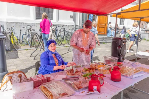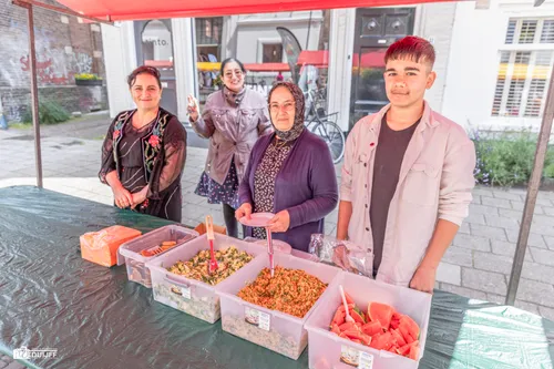 Het is dus een initiatief dat gastvrijheid, verbinding en lekker eten centraal stelt! Het was een zonnige dag en de marktkraampjes werden bemand door zonnige gezichten.