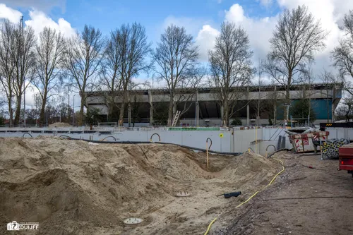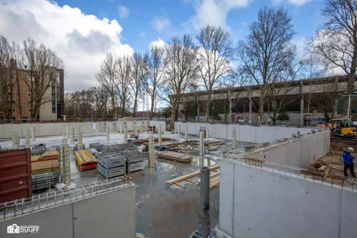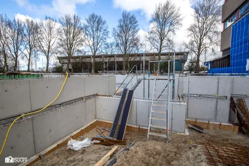 Regelmatig houdt de redactie van Nieuws.nl de voortgang bij van de bouw van een nieuwe sporthal in Haarlem noord. Recent werd de betonnen vloer gestort van de toekomstige fietsenstalling.