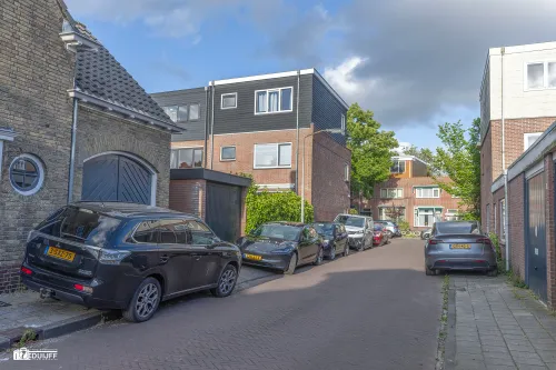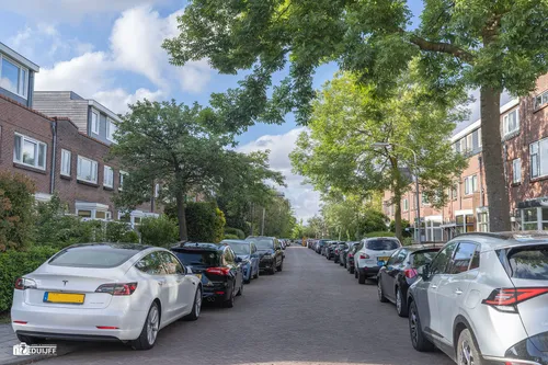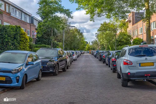 Hoe anders is het nu in de Van 't Hoffstraat, vol met auto's aan weerszijden. Bij tegemoetkomend verkeer vaak gedwongen achteruit rijden...