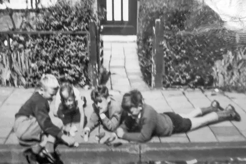 We speelden op het trottoir met Dinkeytoys. Kleine modelgetrouwe autootjes, dus we waren ook in die tijd al mobiel, maar dan zonder mobieltjes.