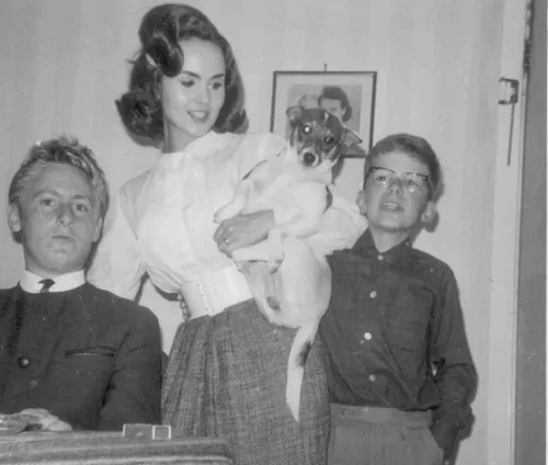 Hieronder v.l.n.r. ikzelf in Beatles-jasje, buurmeisje Marijke Abrahams met keffertje Dincky (huisnr 96), en buurjongen Ferry Abrahams (huisnr 92)