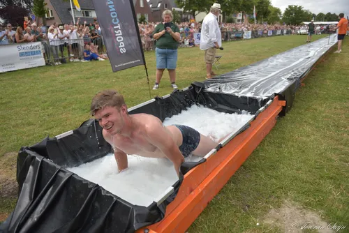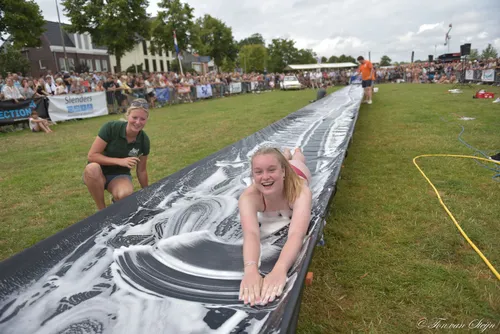 Zaterdag 3 augustus was de laatste dag waarbij het op verschillende manieren niet droog werd gehouden. Daar weten de deelnemers aan het ‘kwalleballen’ en het ‘buikschuiven’ zeker over mee te praten.