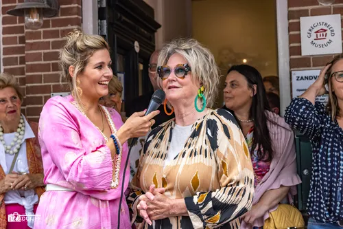 Zandvoort-donderdag 25 juli 2024: Vele belangstellenden woonden de afscheidsreceptie bij van kunstenares Hilly Jansen, die na 12 jaar directeur te zijn geweest van het Zandvoorts Museum gaat genieten van haar pensioen. Drumster Bep Zwerus sprak met haar over haar nieuwe levensfase.