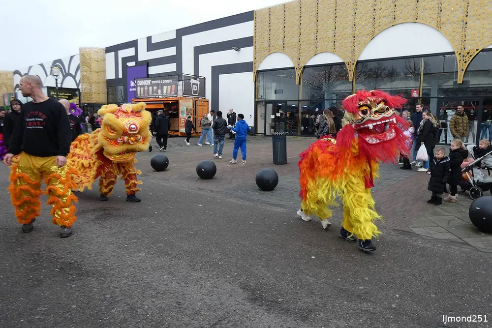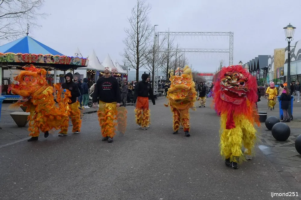 Leeuwendans brengt Chinees Nieuwjaar tot leven op De Bazaar in Beverwijk