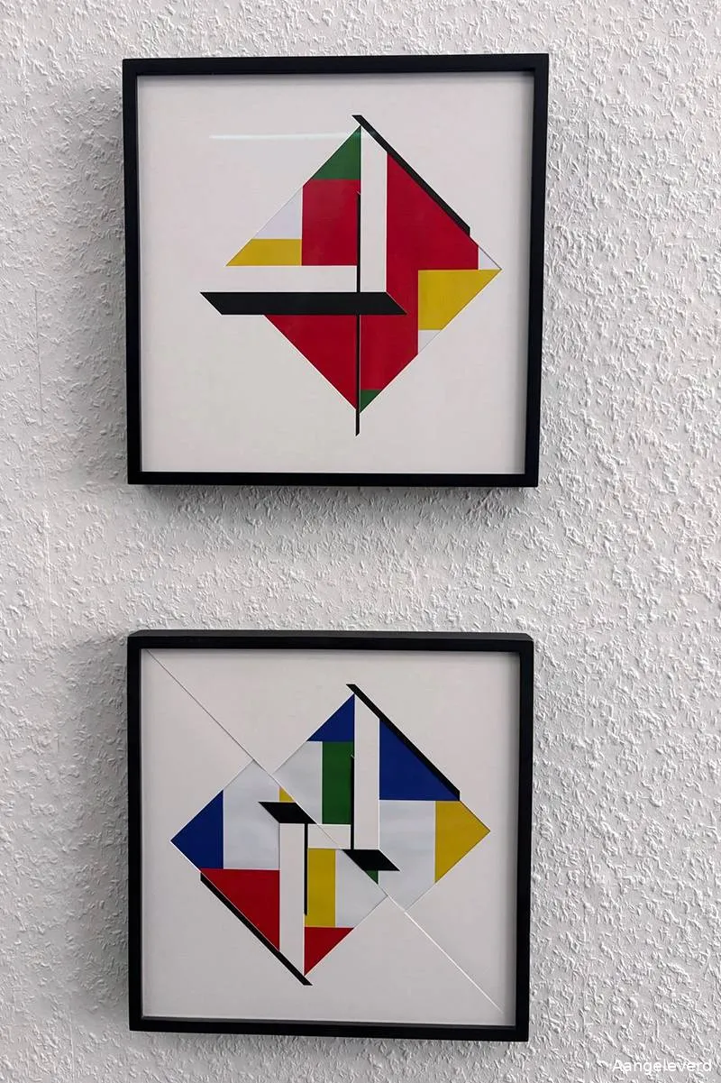 In de getoonde werken zijn heldere vormen en een grafische benadering zichtbaar. Ritme, structuur en kleur bepalen het beeld. Geometrische vlakken verschuiven, overlappen en breken open, waardoor een wisselwerking ontstaat tussen ordening en vrijheid.