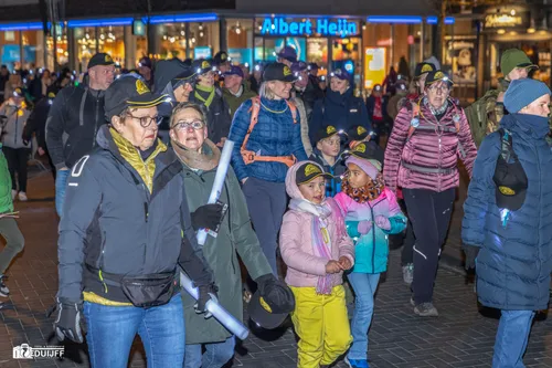 vormden de wandelaars een feestelijke lichtjesslinger die vanaf het eind van de
