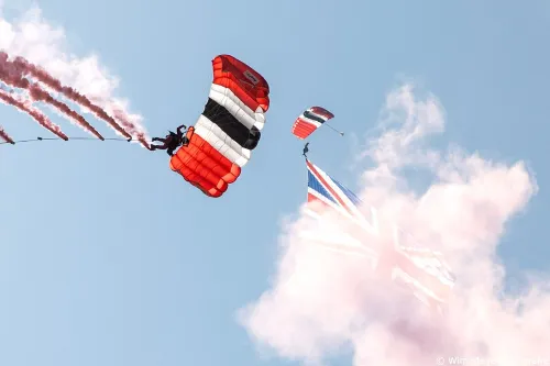 verbindt het spectaculaire van de paradropping met het belang van herdenken.