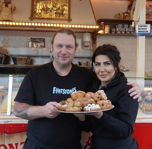 Tegenover de ALDI staat hun oliebollenkraam, je kan nu met Jordy praten