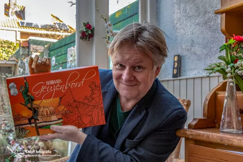 Zo zijn op de achtergrond milieuvriendelijke Hoogovens te zien en CO2-vrij vuurwerk en heeft de vijftiende eeuwse boekdrukker Laurens Janszoon Coster deze cultureelrijke tekening meteen vastgelegd in zijn memoires, vanaf zijn sokkel op de Haarlemse Grote Markt. Naast cultuur en geschiedenis biedt Eric Coolen u, -natuurlijk ook namens Nieuws.nl-, een fles 'Klare Lijn' Champagne met de beste wensen voor 2025 en fantastische feestdagen. Dat alles in een tekening, ik schreef het al, voorzien van veilig vuurwerk! Wat een prachtige combinatie van Kunst, Cultuur, Architectuur, Geschiedenis en liefde voor zijn vak en... liefde voor u allen.