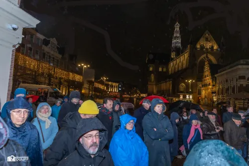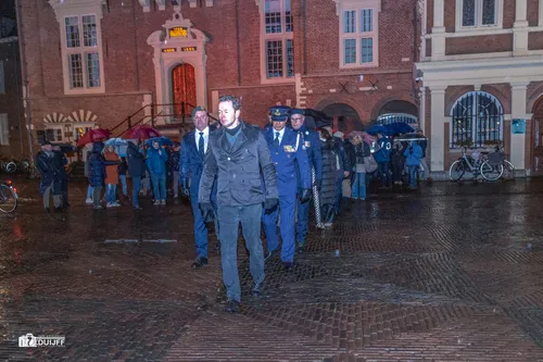 De plechtigheid startte voor het stadhuis op de Grote Markt met een openingstoespraak van Patrick van der Vegt