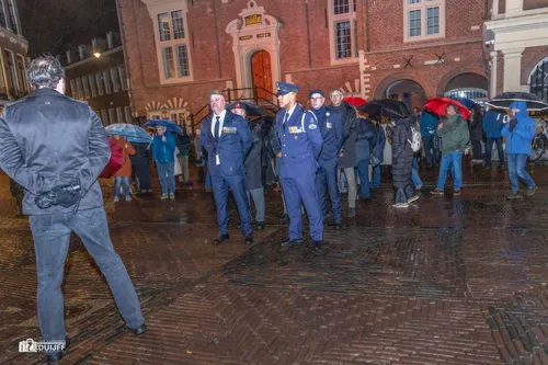 De herdenking startte om 19.30 uur, helaas met slechte weersomstandigheden. Toch trotseerden tientallen belangstellenden de regen en kou.