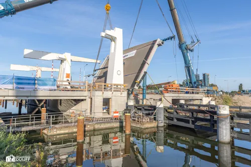 Zaterdag 14 september was een belangrijke dag voor het project Cruquiusbruggen van de provincie Noord-Holland. Het beweegbare deel van de brug richting Heemstede, de brugklep die open en dicht gaat voor schepen, werd per schip naar de Cruquiusbrug (N201) gebracht en met 2 hijskranen op zijn plaatst gehesen. (zie openingsfilm)