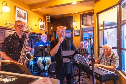 Tijdens Jazz & More ook in horecagelegenheden live muziek, zoals bij voorbeeld in café De Zwaan aan de Zijlvest, waar het Spaarne Combo optrad (foto hieronder)