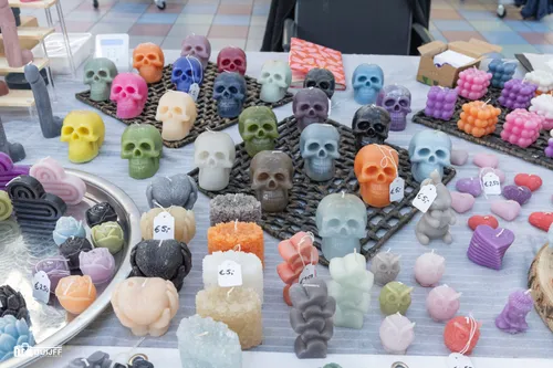 Er werd ook geanticipeerd op de komende feestmaanden. Zo waren er haloweenkaarsen in de vorm van een schedel en ook kerstartikelen