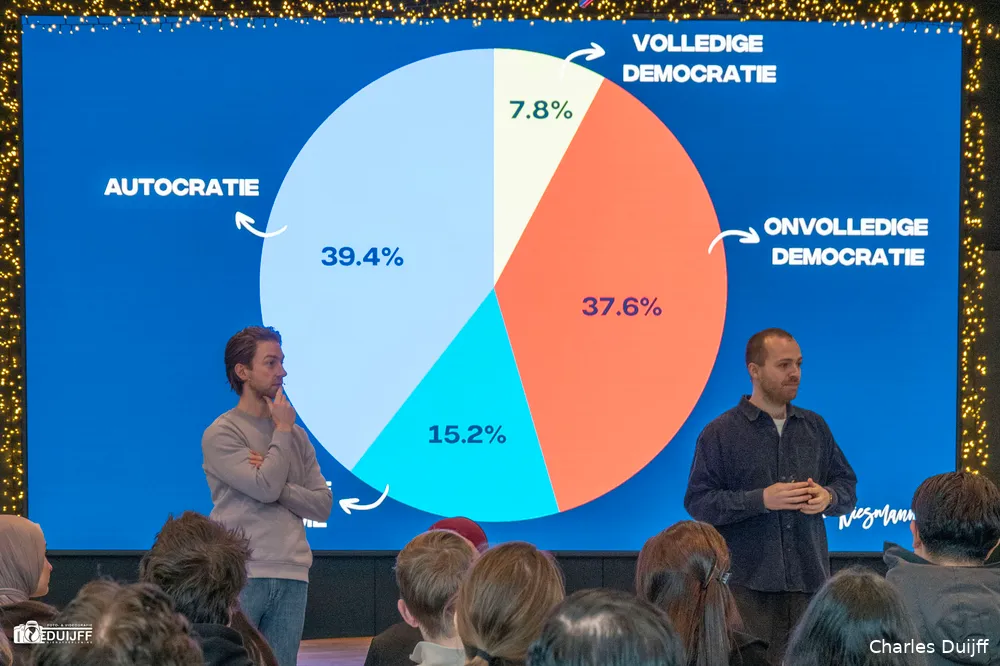 De dag bestond uit 3 voorstellingen en maar liefst 25 workshops over actuele thema’s zoals politiek, financieen, muziek, dansen, drugs en nog vele andere onderwerpen.