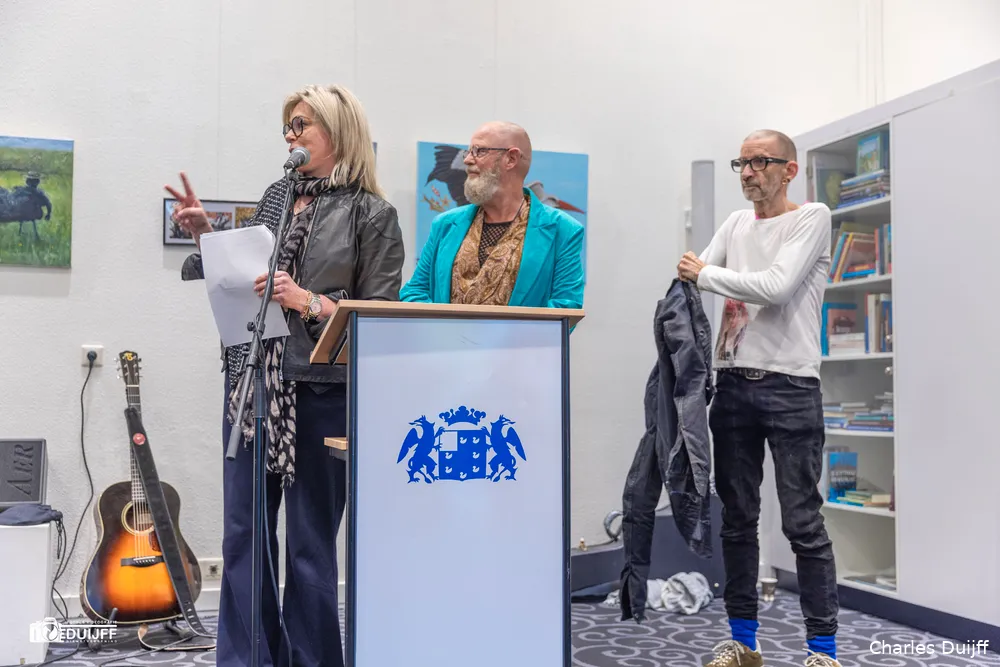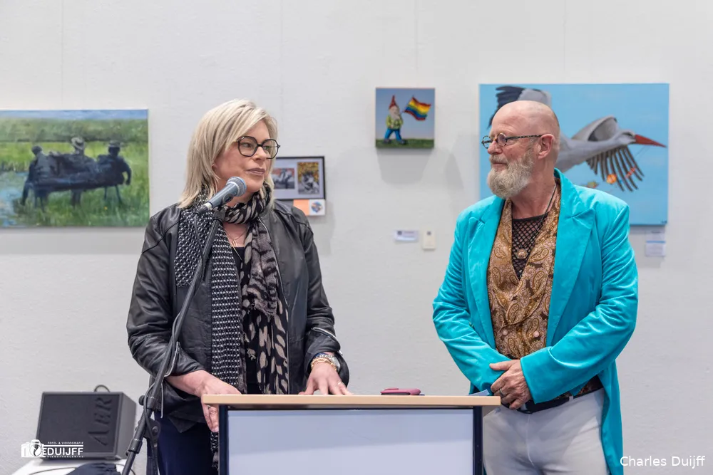 Heemstede - Vrijdagmiddag 31 oktober openden wethouder cultuur Eveline Stam en kunstenaar, theatermaker acteur Fred Rosenhart de Roze Kunstlijn met zowel abstracte als figuratieve kunstwerken.