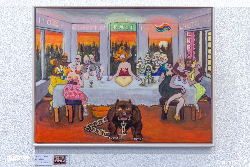 Veel werk is te koop. Vrije toegang tijdens openingstijden.De Roze Kunstlijn is vanaf nu te zien tot in de eerste week van januari.