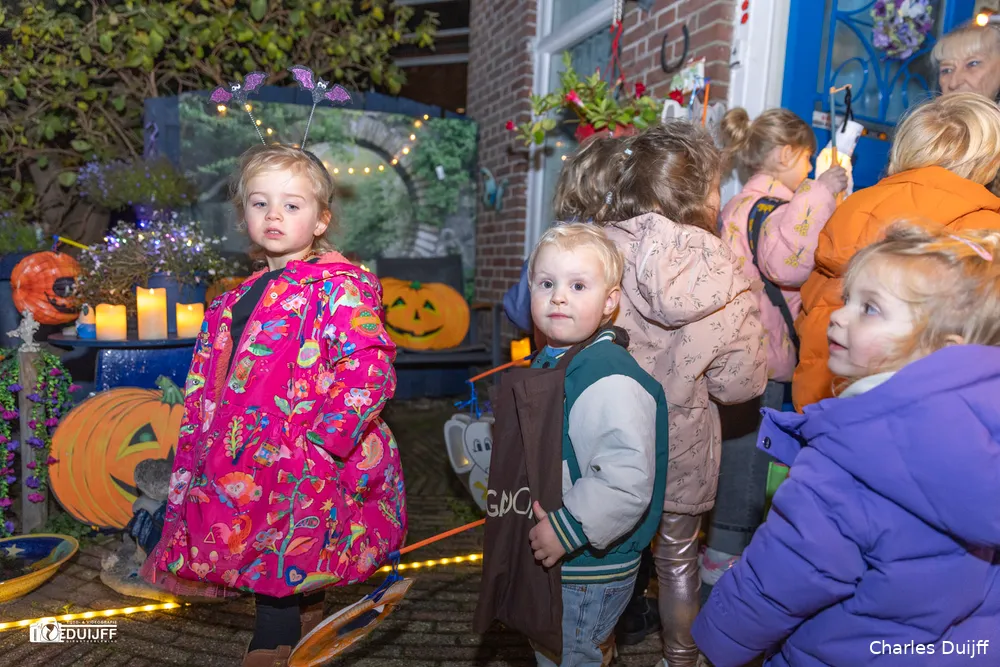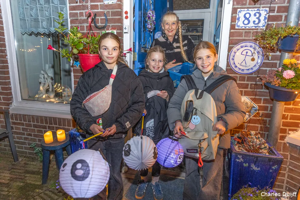 Vanaf de Kleverlaan na de Iepenlaan de eerste straat rechts tref je 'net om de hoek' op de Kinheimweg het 'Blauwe huis', dat inmiddels ook in Haarlem en Heemstede steeds meer bekend is geworden vanwege een heel bijzonder Sint Maartenadres. Dat was te merken, want gezinnen uit de regio brachten hun kids speciaal per auto naar die locatie. Bewoonster Miep Wyckelsma en haar man Emile deden in 2024 al voor 188 kinderen kun deur open en dit jaar liep dat dus op tot 281 kinderen.