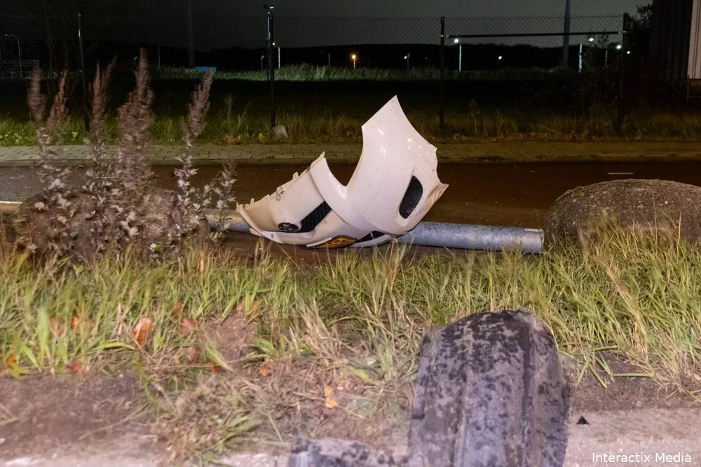 Door de aanrijding liep het voertuig aanzienlijke schade op aan de voorzijde. Ook de airbags werden geactiveerd. De lantaarnpaal kwam volledig ten val, waardoor er veel puin op het wegdek terechtkwam.