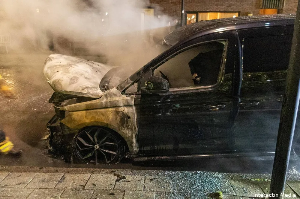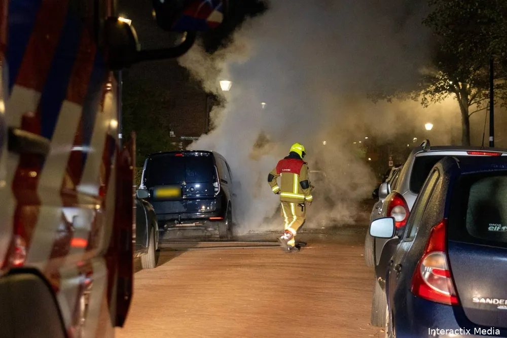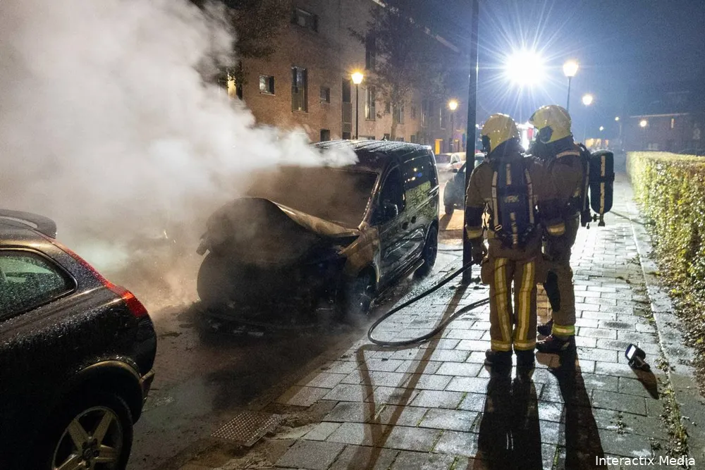 Ruim twee uur later werd aan de Wim van Esterstraat opnieuw een voertuigbrand gemeld. Ondanks het snelle optreden van de brandweer brandde de voorzijde van een bestelbusje volledig uit.
