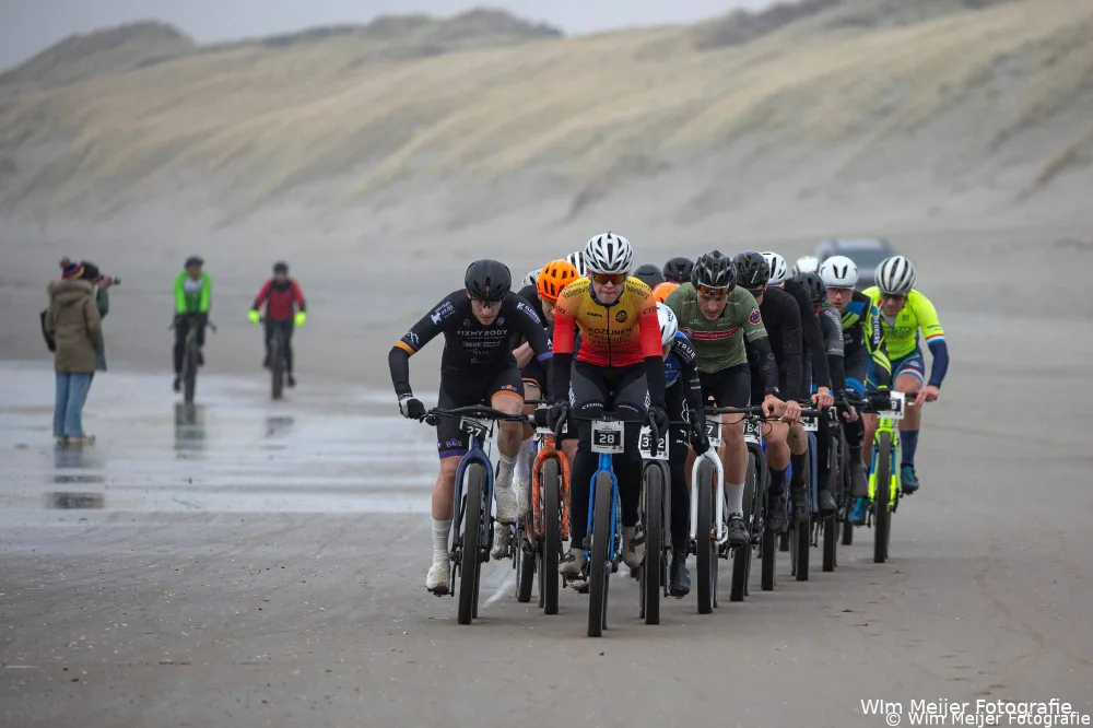 WIJK AAN ZEE - Voor de tiende keer vormde zondag 7 december het strand van Wijk aan Zee het podium voor een van de grootste strandraces in Noord-Holland, de Patina BeachBattle, voorheen de Subaru Beach Battle. Rond de 400 wielrenners stonden om 09.30 uur aan de start bij Beachclub Sunsea voor 45 kilometer over het strand.
