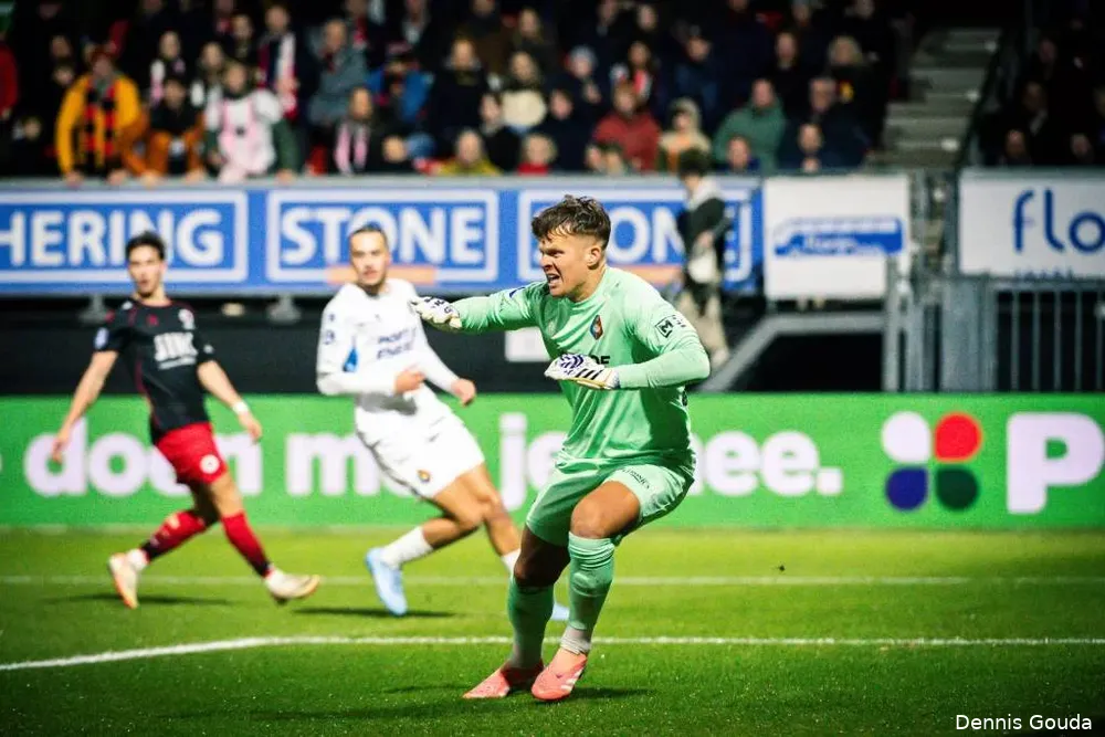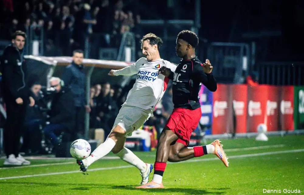 Anthony Correia ging wisselen, maar een minuut na zijn wissels kon de Rotterdamse plaaggeest Yegoian al de aansluiting bewerkstelligen; 1-2. In minuut 81, en zes minuten later schatte Ronald Koeman jr een voorzet verkeerd in, kwam te laat en zag de sterk acterende Noah Naujoks met zijn hoofd de ploegen weer op gelijke hoogte zetten; 2-2.