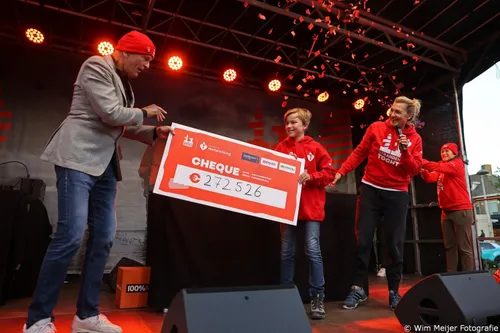 zaterdagmiddag rond kwart voor vijf een cheque worden overhandigd aan Hans