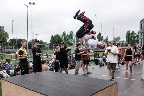 het NK Freerunnen Style. Freerunnen is een sport waarbij op acrobatische wijze